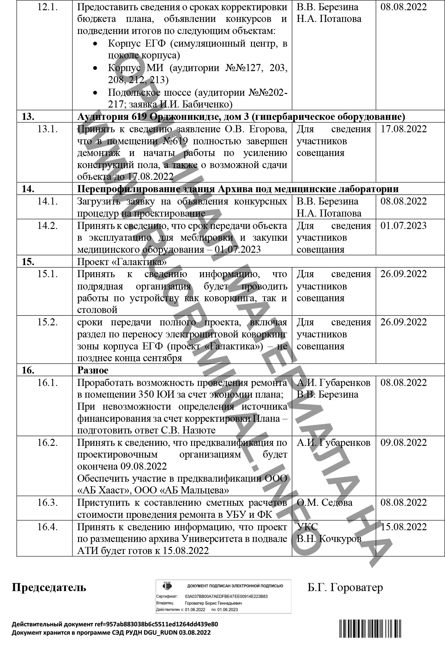 In the minutes of the operational meetings with the vice-rector for capital construction, I discuss the progress of these works and their adoption in full ...